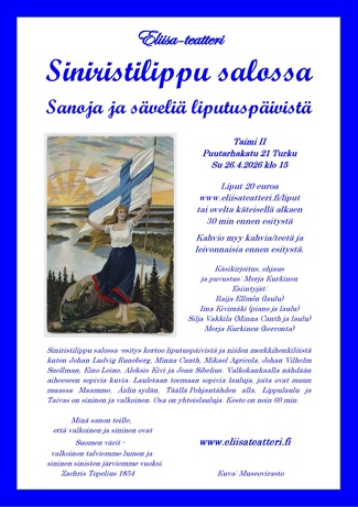 Siniristilippu salossa - Sanoja ja säveliä liputuspäivistä Sunnuntaina 26.4.2026 klo 15 Taimi II Puutarhakatu 21 Turku