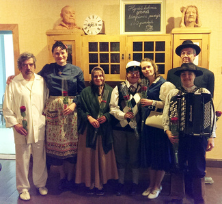 Tämä veikeä näytelmä tapahtuu kahvilassa ja niinpä esityspaikatkin ovat kahviloita tai vastaavanlaisia tiloja. Näyttelijöitä on kuusi, kolme naista ja kolme miestä, sekä lisäksi vielä harmonikkaa soittava pelimannipoika. Puvustus, lavastus ja musiikki ovat 1930-luvun mukaisia.