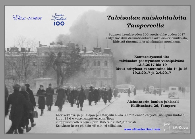 Eliisa-teatterin itsenäisen Suomen 100-vuotisjuhlavuoden 2017 esitys on Talvisodan naiskohtaloita Tampereella.