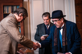 ![]() Rouva Palho kiirehtii Almaa. Pitäisi jo lähteä, autonkuljettaja odottaa, ja Edlakin on valmiina auttamaan takin Alman päälle. Kuva: Henri Ilanen |