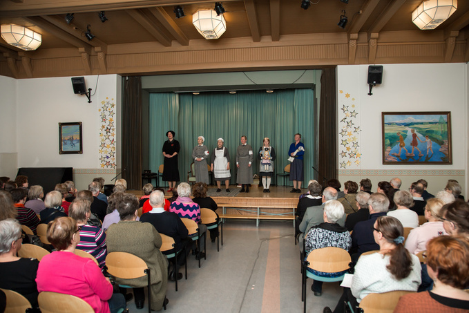 ![]() Onnenpotkut ennen ensi-iltaa Laila Räikkä, Marja-Liisa Niittynen, Tea Lehmuskoski, Sirpa Virhiä-Ylimys, Liisa Virtanen, Merja Kurkinen |
