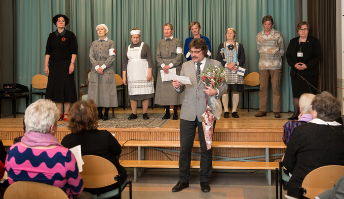 ![]() Teatterin hallituksen puheenjohtaja Jari Kurkinen pitämässä kiitospuhetta Näyttelijät Tea Lehmuskoski, Merja Kurkinen, Laila Räikkä, Sirpa Virhiä-Ylimys, Marja-Liisa Niittynen, Liisa Virtanen, ohjaaja Jorma Kairimo, ääniteknikko Anna-Kaisa Lehtinen |