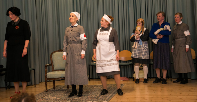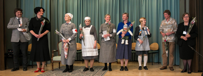 ![]() Teatterin hallituksen puheenjohtaja Jari Kurkinen pitämässä kiitospuhetta Näyttelijät Tea Lehmuskoski, Merja Kurkinen, Laila Räikkä, Sirpa Virhiä-Ylimys, Marja-Liisa Niittynen, Liisa Virtanen, ohjaaja Jorma Kairimo, ääniteknikko Anna-Kaisa Lehtinen |