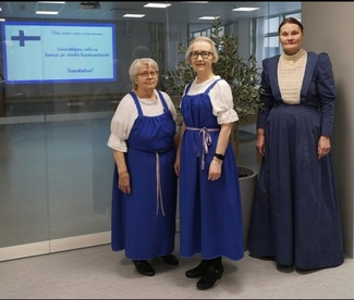Suomen itsenäistyttyä vuonna 1917 alettiin suunnitella omia, kansallisia merkkipäiviä, joista monet aikanaan vakiintuivat tai virallistettiin liputuspäiviksi. Siniristilippu hyväksyttiin Suomen valtiolipuksi toukokuun lopussa 1918. Sen väreistä Zachris Topelius oli vuonna 1854 kirjoittanut: "Minä sanon teille, että valkoinen ja sininen ovat Suomen värit – valkoinen talviemme lumen ja sininen sinisten järviemme vuoksi." Esityksessä tarinoidaan liputuspäivistä ja päivien merkkihenkilöistä kuten Runeberg, Canth, Agricola, Snellman, Leino, Kivi ja Sibelius. Lauletaan yhdessä yleisön kanssa teemaan sopivia lauluja kuten Maamme, Äidin sydän, Täällä Pohjantähden alla, Lippulaulu ja Taivas on sininen ja valkoinen. Esiintyjät: Sirpa Järnberg, Merja Kurkinen, Tea Lehmuskoski Esityksen kesto on noin 50 minuuttia.